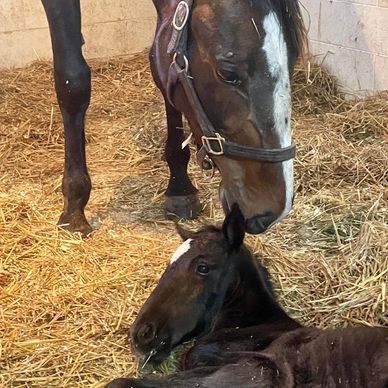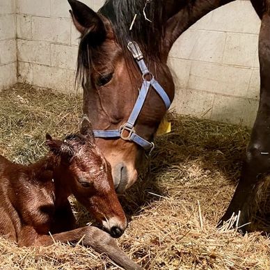 Our first filly, big, bay and beautiful. We look forward to seeing her race to the top in the coming future.